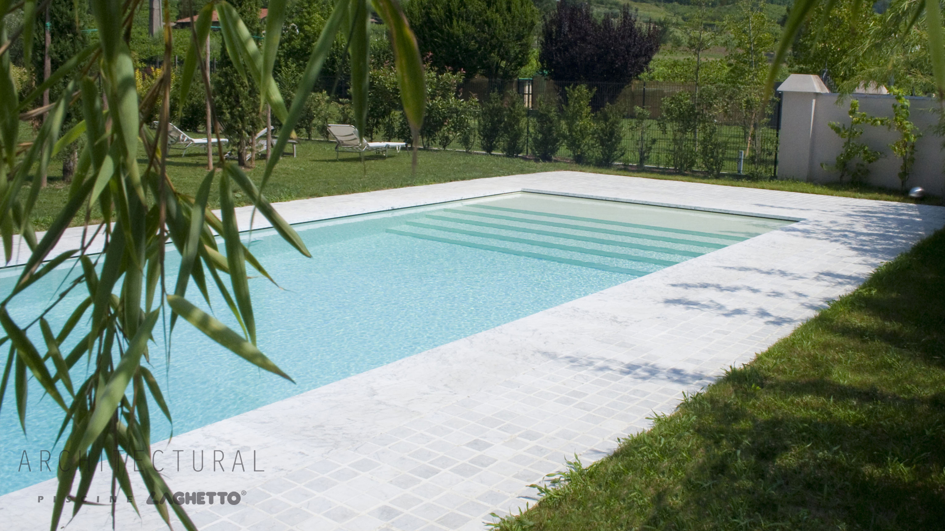 La particolare struttura brevettata del progetto Laghetto Bluespring, totalmente autoportante in acciaio e con vasca di compenso integrata nel canale di tracimazione, consente la progettazione e la realizzazione di piscine interrate dal design moderno, ricercato e di notevoli dimensioni. Tutto questo senza rinunciare alle caratteristiche esclusive che solo una piscina a sfioro può dare.